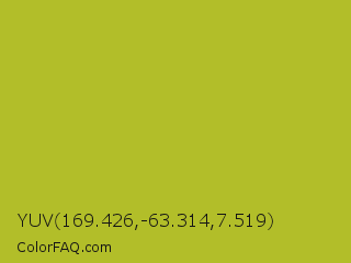 YUV 169.426,-63.314,7.519 Color is a normal yellow color and the nearest color is Acid Green #b0bf1a. Hex code #b2be29 and RGB value is rgb(178,190,41). In RGB color space, this color is composed of 70% red, 75% green, 16% blue, In CMYK color space, this color is composed of 6% cyan, 0% magenta, 78% yellow , 25% black , In HSL color space, this color has a hue angle of 65° , 65% saturation and 45% lightness.