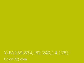 YUV 169.834,-82.249,14.178 Color is a normal yellow color and the nearest color is La Rioja #b3c110. Hex code #bac203 and RGB value is rgb(186,194,3). In RGB color space, this color is composed of 73% red, 76% green, 1% blue, In CMYK color space, this color is composed of 4% cyan, 0% magenta, 98% yellow , 24% black , In HSL color space, this color has a hue angle of 63° , 97% saturation and 39% lightness.