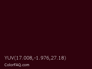 YUV 17.008,-1.976,27.18 Color is a very dark red color and the nearest color is Temptress #3b000b. Hex code #30020d and RGB value is rgb(48,2,13). In RGB color space, this color is composed of 19% red, 1% green, 5% blue, In CMYK color space, this color is composed of 0% cyan, 96% magenta, 73% yellow , 81% black , In HSL color space, this color has a hue angle of 346° , 92% saturation and 10% lightness.
