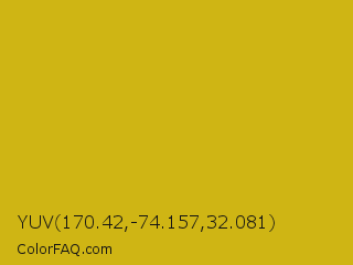 YUV 170.42,-74.157,32.081 Color is a normal yellow color and the nearest color is Galliano #dcb20c. Hex code #cfb514 and RGB value is rgb(207,181,20). In RGB color space, this color is composed of 81% red, 71% green, 8% blue, In CMYK color space, this color is composed of 0% cyan, 13% magenta, 90% yellow , 19% black , In HSL color space, this color has a hue angle of 52° , 82% saturation and 45% lightness.