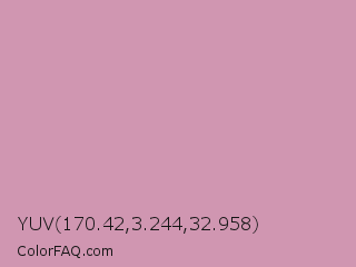 YUV 170.42,3.244,32.958 Color is a light rose color and the nearest color is Careys Pink #d29eaa. Hex code #d096b1 and RGB value is rgb(208,150,177). In RGB color space, this color is composed of 82% red, 59% green, 69% blue, In CMYK color space, this color is composed of 0% cyan, 28% magenta, 15% yellow , 18% black , In HSL color space, this color has a hue angle of 332° , 38% saturation and 70% lightness.
