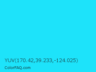 YUV 170.42,39.233,-124.025 Color is a normal cyan color and the nearest color is Loeen #15f2fd. Hex code #1de3fa and RGB value is rgb(29,227,250). In RGB color space, this color is composed of 11% red, 89% green, 98% blue, In CMYK color space, this color is composed of 88% cyan, 9% magenta, 0% yellow , 2% black , In HSL color space, this color has a hue angle of 186° , 96% saturation and 55% lightness.