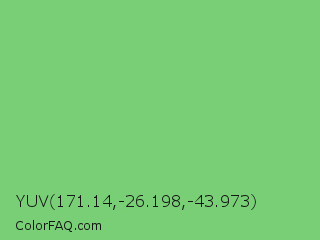 YUV 171.14,-26.198,-43.973 Color is a light green color and the nearest color is Pastel Green #77dd77. Hex code #79cf76 and RGB value is rgb(121,207,118). In RGB color space, this color is composed of 47% red, 81% green, 46% blue, In CMYK color space, this color is composed of 42% cyan, 0% magenta, 43% yellow , 19% black , In HSL color space, this color has a hue angle of 118° , 48% saturation and 64% lightness.