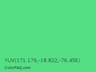 YUV 171.179,-18.822,-76.456 Color is a normal green color and the nearest color is Very Light Malachite Green #64e986. Hex code #54df85 and RGB value is rgb(84,223,133). In RGB color space, this color is composed of 33% red, 87% green, 52% blue, In CMYK color space, this color is composed of 62% cyan, 0% magenta, 40% yellow , 13% black , In HSL color space, this color has a hue angle of 141° , 68% saturation and 60% lightness.