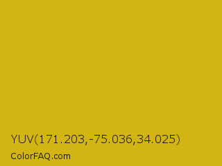 YUV 171.203,-75.036,34.025 Color is a normal yellow color and the nearest color is Galliano #dcb20c. Hex code #d2b513 and RGB value is rgb(210,181,19). In RGB color space, this color is composed of 82% red, 71% green, 7% blue, In CMYK color space, this color is composed of 0% cyan, 14% magenta, 91% yellow , 18% black , In HSL color space, this color has a hue angle of 51° , 83% saturation and 45% lightness.