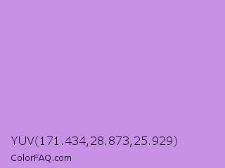 YUV 171.434,28.873,25.929 Color is a light purple color and the nearest color is Bright Lavender #bf94e4. Hex code #c991e6 and RGB value is rgb(201,145,230). In RGB color space, this color is composed of 79% red, 57% green, 90% blue, In CMYK color space, this color is composed of 13% cyan, 37% magenta, 0% yellow , 10% black , In HSL color space, this color has a hue angle of 280° , 63% saturation and 74% lightness.