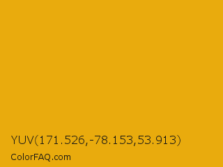YUV 171.526,-78.153,53.913 Color is a normal orange color and the nearest color is Buttercup #f3ad16. Hex code #e9ab0d and RGB value is rgb(233,171,13). In RGB color space, this color is composed of 91% red, 67% green, 5% blue, In CMYK color space, this color is composed of 0% cyan, 27% magenta, 94% yellow , 9% black , In HSL color space, this color has a hue angle of 43° , 89% saturation and 48% lightness.