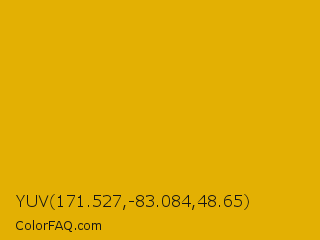 YUV 171.527,-83.084,48.65 Color is a normal yellow color and the nearest color is Galliano #dcb20c. Hex code #e3b003 and RGB value is rgb(227,176,3). In RGB color space, this color is composed of 89% red, 69% green, 1% blue, In CMYK color space, this color is composed of 0% cyan, 22% magenta, 99% yellow , 11% black , In HSL color space, this color has a hue angle of 46° , 97% saturation and 45% lightness.