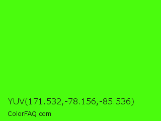 YUV 171.532,-78.156,-85.536 Color is a normal green color and the nearest color is Chlorophyll Green #4aff00. Hex code #4afc0d and RGB value is rgb(74,252,13). In RGB color space, this color is composed of 29% red, 99% green, 5% blue, In CMYK color space, this color is composed of 71% cyan, 0% magenta, 95% yellow , 1% black , In HSL color space, this color has a hue angle of 105° , 98% saturation and 52% lightness.