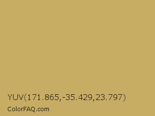 YUV 171.865,-35.429,23.797 Color is a normal orange color and the nearest color is Laser #c8b568. Hex code #c7ac64 and RGB value is rgb(199,172,100). In RGB color space, this color is composed of 78% red, 67% green, 39% blue, In CMYK color space, this color is composed of 0% cyan, 14% magenta, 50% yellow , 22% black , In HSL color space, this color has a hue angle of 44° , 47% saturation and 59% lightness.