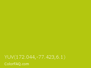 YUV 172.044,-77.423,6.1 Color is a normal yellow color and the nearest color is La Rioja #b3c110. Hex code #b3c70f and RGB value is rgb(179,199,15). In RGB color space, this color is composed of 70% red, 78% green, 6% blue, In CMYK color space, this color is composed of 10% cyan, 0% magenta, 92% yellow , 22% black , In HSL color space, this color has a hue angle of 67° , 86% saturation and 42% lightness.