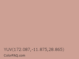 YUV 172.087,-11.875,28.865 Color is a light red color and the nearest color is Eunry #cfa39d. Hex code #cda094 and RGB value is rgb(205,160,148). In RGB color space, this color is composed of 80% red, 63% green, 58% blue, In CMYK color space, this color is composed of 0% cyan, 22% magenta, 28% yellow , 20% black , In HSL color space, this color has a hue angle of 13° , 36% saturation and 69% lightness.