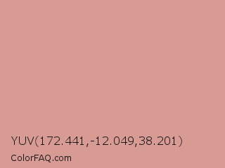 YUV 172.441,-12.049,38.201 Color is a light red color and the nearest color is Petite Orchid #db9690. Hex code #d89b94 and RGB value is rgb(216,155,148). In RGB color space, this color is composed of 85% red, 61% green, 58% blue, In CMYK color space, this color is composed of 0% cyan, 28% magenta, 31% yellow , 15% black , In HSL color space, this color has a hue angle of 6° , 47% saturation and 71% lightness.