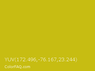 YUV 172.496,-76.167,23.244 Color is a normal yellow color and the nearest color is La Rioja #b3c110. Hex code #c7bd12 and RGB value is rgb(199,189,18). In RGB color space, this color is composed of 78% red, 74% green, 7% blue, In CMYK color space, this color is composed of 0% cyan, 5% magenta, 91% yellow , 22% black , In HSL color space, this color has a hue angle of 57° , 83% saturation and 43% lightness.