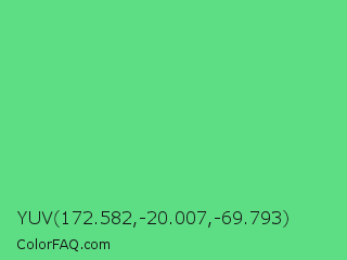 YUV 172.582,-20.007,-69.793 Color is a light green color and the nearest color is Very Light Malachite Green #64e986. Hex code #5ddd84 and RGB value is rgb(93,221,132). In RGB color space, this color is composed of 36% red, 87% green, 52% blue, In CMYK color space, this color is composed of 58% cyan, 0% magenta, 40% yellow , 13% black , In HSL color space, this color has a hue angle of 138° , 65% saturation and 62% lightness.