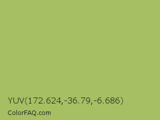 YUV 172.624,-36.79,-6.686 Color is a normal lime color and the nearest color is Middle Green Yellow #acbf60. Hex code #a5bf62 and RGB value is rgb(165,191,98). In RGB color space, this color is composed of 65% red, 75% green, 38% blue, In CMYK color space, this color is composed of 14% cyan, 0% magenta, 49% yellow , 25% black , In HSL color space, this color has a hue angle of 77° , 42% saturation and 57% lightness.