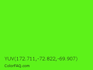 YUV 172.711,-72.822,-69.907 Color is a normal green color and the nearest color is Bright Green #66ff00. Hex code #5df219 and RGB value is rgb(93,242,25). In RGB color space, this color is composed of 36% red, 95% green, 10% blue, In CMYK color space, this color is composed of 62% cyan, 0% magenta, 90% yellow , 5% black , In HSL color space, this color has a hue angle of 101° , 89% saturation and 52% lightness.