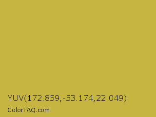 YUV 172.859,-53.174,22.049 Color is a normal yellow color and the nearest color is Earls Green #c9b93b. Hex code #c6b541 and RGB value is rgb(198,181,65). In RGB color space, this color is composed of 78% red, 71% green, 25% blue, In CMYK color space, this color is composed of 0% cyan, 9% magenta, 67% yellow , 22% black , In HSL color space, this color has a hue angle of 52° , 54% saturation and 52% lightness.