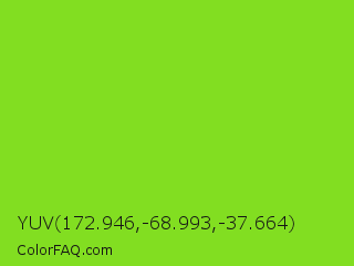 YUV 172.946,-68.993,-37.664 Color is a normal green color and the nearest color is Atlantis #97cd2d. Hex code #82de21 and RGB value is rgb(130,222,33). In RGB color space, this color is composed of 51% red, 87% green, 13% blue, In CMYK color space, this color is composed of 41% cyan, 0% magenta, 85% yellow , 13% black , In HSL color space, this color has a hue angle of 89° , 74% saturation and 50% lightness.