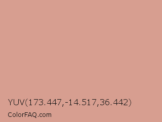 YUV 173.447,-14.517,36.442 Color is a light red color and the nearest color is Petite Orchid #db9690. Hex code #d79e90 and RGB value is rgb(215,158,144). In RGB color space, this color is composed of 84% red, 62% green, 56% blue, In CMYK color space, this color is composed of 0% cyan, 27% magenta, 33% yellow , 16% black , In HSL color space, this color has a hue angle of 12° , 47% saturation and 70% lightness.