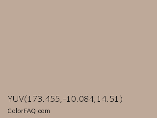 YUV 173.455,-10.084,14.51 Color is a light orange color and the nearest color is Heathered Gray #b6b095. Hex code #bea999 and RGB value is rgb(190,169,153). In RGB color space, this color is composed of 75% red, 66% green, 60% blue, In CMYK color space, this color is composed of 0% cyan, 11% magenta, 19% yellow , 25% black , In HSL color space, this color has a hue angle of 26° , 22% saturation and 67% lightness.