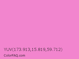 YUV 173.913,15.819,59.712 Color is a light magenta color and the nearest color is Princess Perfume #ff85cf. Hex code #f285ce and RGB value is rgb(242,133,206). In RGB color space, this color is composed of 95% red, 52% green, 81% blue, In CMYK color space, this color is composed of 0% cyan, 45% magenta, 15% yellow , 5% black , In HSL color space, this color has a hue angle of 320° , 81% saturation and 74% lightness.