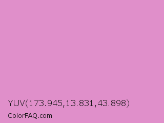 YUV 173.945,13.831,43.898 Color is a light magenta color and the nearest color is Shocking #e292c0. Hex code #e08fca and RGB value is rgb(224,143,202). In RGB color space, this color is composed of 88% red, 56% green, 79% blue, In CMYK color space, this color is composed of 0% cyan, 36% magenta, 10% yellow , 12% black , In HSL color space, this color has a hue angle of 316° , 57% saturation and 72% lightness.