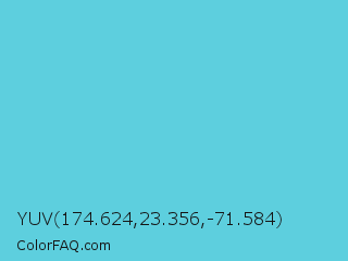 YUV 174.624,23.356,-71.584 Color is a light cyan color and the nearest color is Viking #64ccdb. Hex code #5dcfde and RGB value is rgb(93,207,222). In RGB color space, this color is composed of 36% red, 81% green, 87% blue, In CMYK color space, this color is composed of 58% cyan, 7% magenta, 0% yellow , 13% black , In HSL color space, this color has a hue angle of 187° , 66% saturation and 62% lightness.