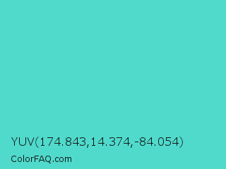 YUV 174.843,14.374,-84.054 Color is a normal cyan color and the nearest color is Medium Turquoise #48d1cc. Hex code #4fdacc and RGB value is rgb(79,218,204). In RGB color space, this color is composed of 31% red, 85% green, 80% blue, In CMYK color space, this color is composed of 64% cyan, 0% magenta, 6% yellow , 15% black , In HSL color space, this color has a hue angle of 174° , 65% saturation and 58% lightness.