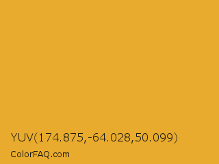 YUV 174.875,-64.028,50.099 Color is a normal orange color and the nearest color is Fuel Yellow #eca927. Hex code #e8ab2d and RGB value is rgb(232,171,45). In RGB color space, this color is composed of 91% red, 67% green, 18% blue, In CMYK color space, this color is composed of 0% cyan, 26% magenta, 81% yellow , 9% black , In HSL color space, this color has a hue angle of 40° , 80% saturation and 54% lightness.