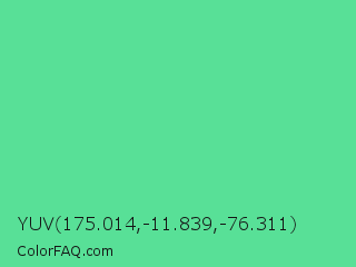 YUV 175.014,-11.839,-76.311 Color is a light green color and the nearest color is Very Light Malachite Green #64e986. Hex code #58e097 and RGB value is rgb(88,224,151). In RGB color space, this color is composed of 35% red, 88% green, 59% blue, In CMYK color space, this color is composed of 61% cyan, 0% magenta, 33% yellow , 12% black , In HSL color space, this color has a hue angle of 148° , 69% saturation and 61% lightness.