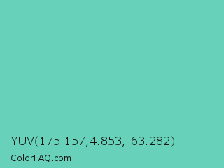 YUV 175.157,4.853,-63.282 Color is a light cyan color and the nearest color is Downy #6fd0c5. Hex code #67d2b9 and RGB value is rgb(103,210,185). In RGB color space, this color is composed of 40% red, 82% green, 73% blue, In CMYK color space, this color is composed of 51% cyan, 0% magenta, 12% yellow , 18% black , In HSL color space, this color has a hue angle of 166° , 54% saturation and 61% lightness.