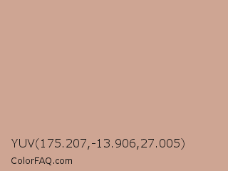 YUV 175.207,-13.906,27.005 Color is a light orange color and the nearest color is Eunry #cfa39d. Hex code #cea593 and RGB value is rgb(206,165,147). In RGB color space, this color is composed of 81% red, 65% green, 58% blue, In CMYK color space, this color is composed of 0% cyan, 20% magenta, 29% yellow , 19% black , In HSL color space, this color has a hue angle of 18° , 38% saturation and 69% lightness.