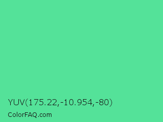 YUV 175.22,-10.954,-80 Color is a light green color and the nearest color is Eucalyptus #44d7a8. Hex code #54e299 and RGB value is rgb(84,226,153). In RGB color space, this color is composed of 33% red, 89% green, 60% blue, In CMYK color space, this color is composed of 63% cyan, 0% magenta, 32% yellow , 11% black , In HSL color space, this color has a hue angle of 149° , 71% saturation and 61% lightness.