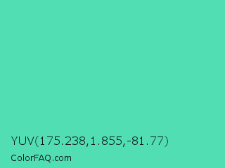 YUV 175.238,1.855,-81.77 Color is a normal green color and the nearest color is Eucalyptus #44d7a8. Hex code #52deb3 and RGB value is rgb(82,222,179). In RGB color space, this color is composed of 32% red, 87% green, 70% blue, In CMYK color space, this color is composed of 63% cyan, 0% magenta, 19% yellow , 13% black , In HSL color space, this color has a hue angle of 162° , 68% saturation and 60% lightness.