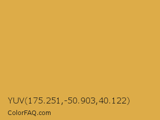 YUV 175.251,-50.903,40.122 Color is a normal orange color and the nearest color is Anzac #e0b646. Hex code #ddac48 and RGB value is rgb(221,172,72). In RGB color space, this color is composed of 87% red, 67% green, 28% blue, In CMYK color space, this color is composed of 0% cyan, 22% magenta, 67% yellow , 13% black , In HSL color space, this color has a hue angle of 40° , 69% saturation and 57% lightness.