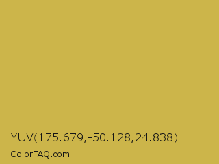 YUV 175.679,-50.128,24.838 Color is a normal yellow color and the nearest color is Turmeric #cabb48. Hex code #ccb54a and RGB value is rgb(204,181,74). In RGB color space, this color is composed of 80% red, 71% green, 29% blue, In CMYK color space, this color is composed of 0% cyan, 11% magenta, 64% yellow , 20% black , In HSL color space, this color has a hue angle of 49° , 56% saturation and 55% lightness.