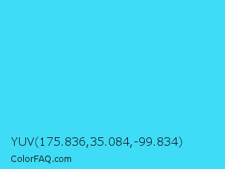 YUV 175.836,35.084,-99.834 Color is a light cyan color and the nearest color is Turquoise #40e0d0. Hex code #3edcf7 and RGB value is rgb(62,220,247). In RGB color space, this color is composed of 24% red, 86% green, 97% blue, In CMYK color space, this color is composed of 75% cyan, 11% magenta, 0% yellow , 3% black , In HSL color space, this color has a hue angle of 189° , 92% saturation and 61% lightness.