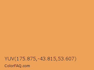 YUV 175.875,-43.815,53.607 Color is a light orange color and the nearest color is Sandy Brown #f4a460. Hex code #eda257 and RGB value is rgb(237,162,87). In RGB color space, this color is composed of 93% red, 64% green, 34% blue, In CMYK color space, this color is composed of 0% cyan, 32% magenta, 63% yellow , 7% black , In HSL color space, this color has a hue angle of 30° , 81% saturation and 64% lightness.