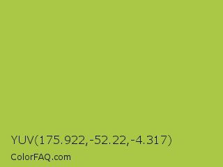 YUV 175.922,-52.22,-4.317 Color is a normal lime color and the nearest color is Android Green #a4c639. Hex code #abc746 and RGB value is rgb(171,199,70). In RGB color space, this color is composed of 67% red, 78% green, 27% blue, In CMYK color space, this color is composed of 14% cyan, 0% magenta, 65% yellow , 22% black , In HSL color space, this color has a hue angle of 73° , 54% saturation and 53% lightness.