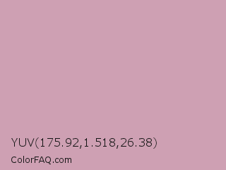 YUV 175.92,1.518,26.38 Color is a light rose color and the nearest color is Careys Pink #d29eaa. Hex code #cea0b3 and RGB value is rgb(206,160,179). In RGB color space, this color is composed of 81% red, 63% green, 70% blue, In CMYK color space, this color is composed of 0% cyan, 22% magenta, 13% yellow , 19% black , In HSL color space, this color has a hue angle of 335° , 32% saturation and 72% lightness.