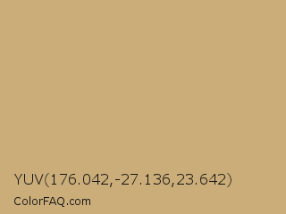 YUV 176.042,-27.136,23.642 Color is a light orange color and the nearest color is Light French Beige #c8ad7f. Hex code #cbad79 and RGB value is rgb(203,173,121). In RGB color space, this color is composed of 80% red, 68% green, 47% blue, In CMYK color space, this color is composed of 0% cyan, 15% magenta, 40% yellow , 20% black , In HSL color space, this color has a hue angle of 38° , 44% saturation and 64% lightness.