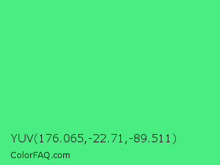 YUV 176.065,-22.71,-89.511 Color is a light green color and the nearest color is Very Light Malachite Green #64e986. Hex code #4aed82 and RGB value is rgb(74,237,130). In RGB color space, this color is composed of 29% red, 93% green, 51% blue, In CMYK color space, this color is composed of 69% cyan, 0% magenta, 45% yellow , 7% black , In HSL color space, this color has a hue angle of 141° , 82% saturation and 61% lightness.