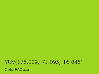YUV 176.209,-71.095,-16.846 Color is a normal lime color and the nearest color is Atlantis #97cd2d. Hex code #9dd620 and RGB value is rgb(157,214,32). In RGB color space, this color is composed of 62% red, 84% green, 13% blue, In CMYK color space, this color is composed of 27% cyan, 0% magenta, 85% yellow , 16% black , In HSL color space, this color has a hue angle of 79° , 74% saturation and 48% lightness.