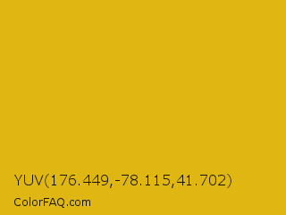 YUV 176.449,-78.115,41.702 Color is a normal yellow color and the nearest color is Gold Tips #deba13. Hex code #e0b712 and RGB value is rgb(224,183,18). In RGB color space, this color is composed of 88% red, 72% green, 7% blue, In CMYK color space, this color is composed of 0% cyan, 18% magenta, 92% yellow , 12% black , In HSL color space, this color has a hue angle of 48° , 85% saturation and 47% lightness.