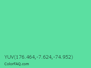 YUV 176.464,-7.624,-74.952 Color is a light green color and the nearest color is Medium Aquamarine #66ddaa. Hex code #5bdfa1 and RGB value is rgb(91,223,161). In RGB color space, this color is composed of 36% red, 87% green, 63% blue, In CMYK color space, this color is composed of 59% cyan, 0% magenta, 28% yellow , 13% black , In HSL color space, this color has a hue angle of 152° , 67% saturation and 62% lightness.