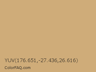 YUV 176.651,-27.436,26.616 Color is a light orange color and the nearest color is Light French Beige #c8ad7f. Hex code #cfac79 and RGB value is rgb(207,172,121). In RGB color space, this color is composed of 81% red, 67% green, 47% blue, In CMYK color space, this color is composed of 0% cyan, 17% magenta, 42% yellow , 19% black , In HSL color space, this color has a hue angle of 36° , 47% saturation and 64% lightness.