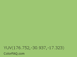 YUV 176.752,-30.937,-17.323 Color is a light green color and the nearest color is Pistachio #93c572. Hex code #9dc772 and RGB value is rgb(157,199,114). In RGB color space, this color is composed of 62% red, 78% green, 45% blue, In CMYK color space, this color is composed of 21% cyan, 0% magenta, 43% yellow , 22% black , In HSL color space, this color has a hue angle of 90° , 43% saturation and 61% lightness.