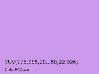 YUV 176.885,28.158,22.026 Color is a light purple color and the nearest color is Bright Ube #d19fe8. Hex code #ca99ea and RGB value is rgb(202,153,234). In RGB color space, this color is composed of 79% red, 60% green, 92% blue, In CMYK color space, this color is composed of 14% cyan, 35% magenta, 0% yellow , 8% black , In HSL color space, this color has a hue angle of 276° , 66% saturation and 76% lightness.