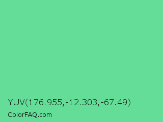 YUV 176.955,-12.303,-67.49 Color is a light green color and the nearest color is Medium Aquamarine #66ddaa. Hex code #64dd98 and RGB value is rgb(100,221,152). In RGB color space, this color is composed of 39% red, 87% green, 60% blue, In CMYK color space, this color is composed of 55% cyan, 0% magenta, 31% yellow , 13% black , In HSL color space, this color has a hue angle of 146° , 64% saturation and 63% lightness.